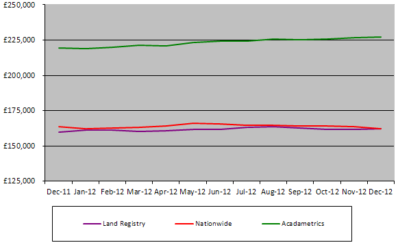 - Acadametric’s average property prices December 2012 versus January 2011 have only changed by 2.1%